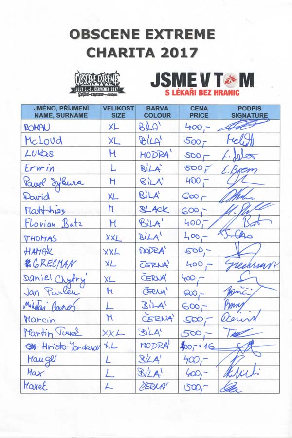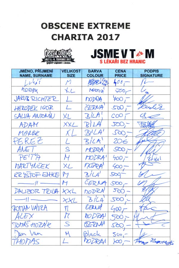Lists of donors NUCLEAR ASSULT + OEF 2017 Charity: