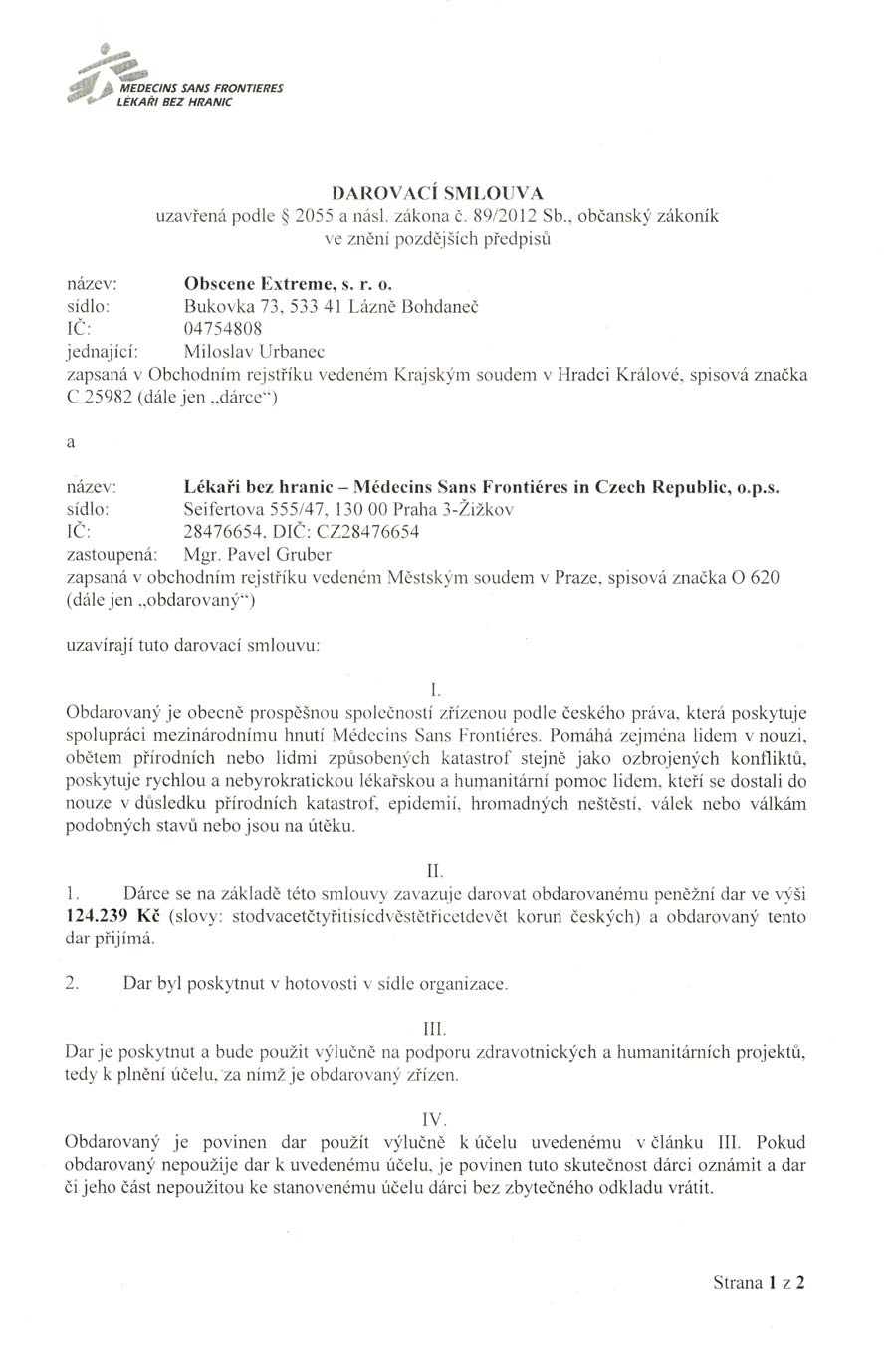 List of donors Charity via Obscene e-shop in the course of 2016/2017: