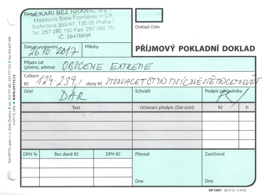 Thanks to the fact that you bought a charity t-shirt at the festival or through the e-shop we were able to pass a nice amount of 124.239 CZK on to the Prague office in October.