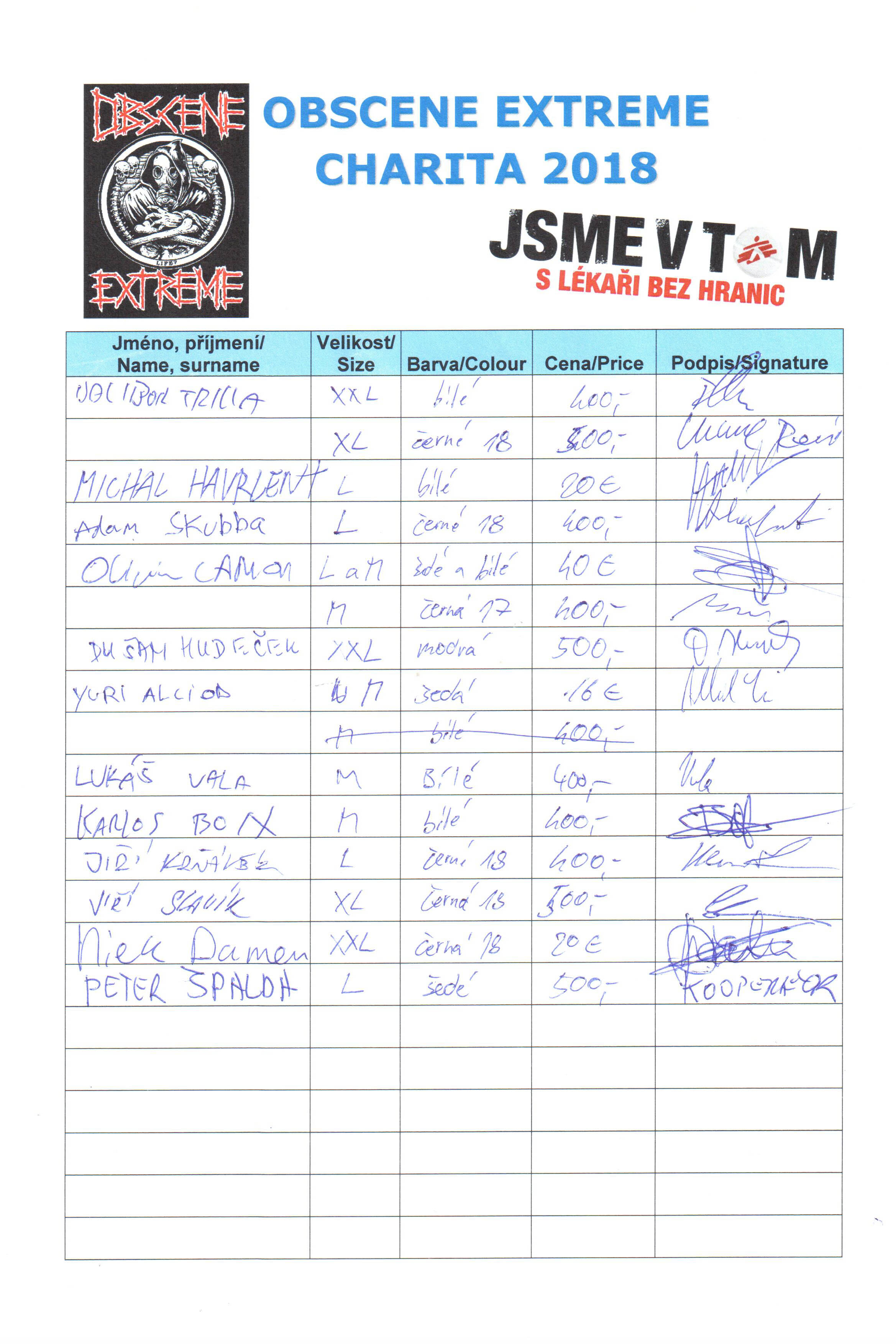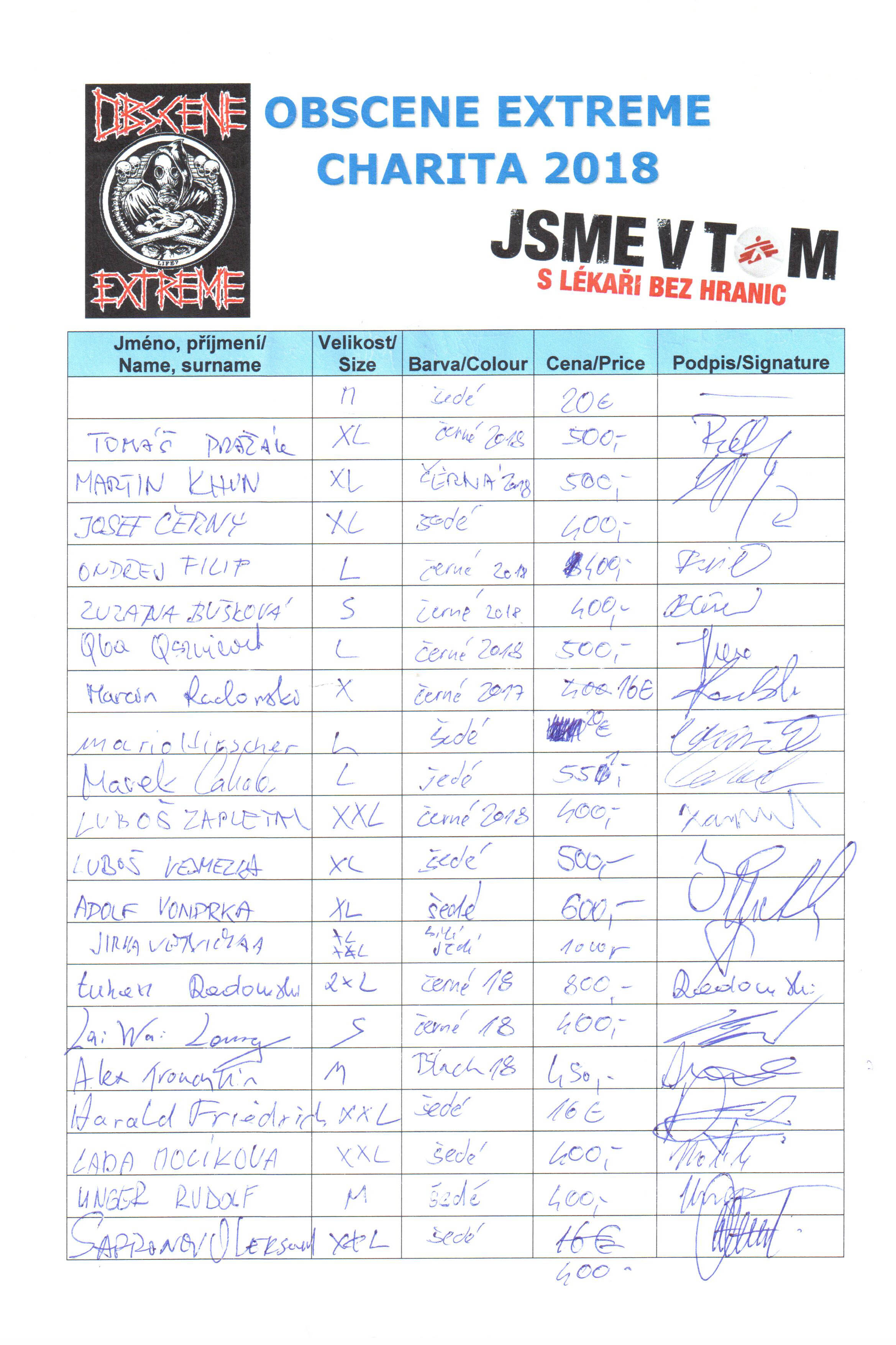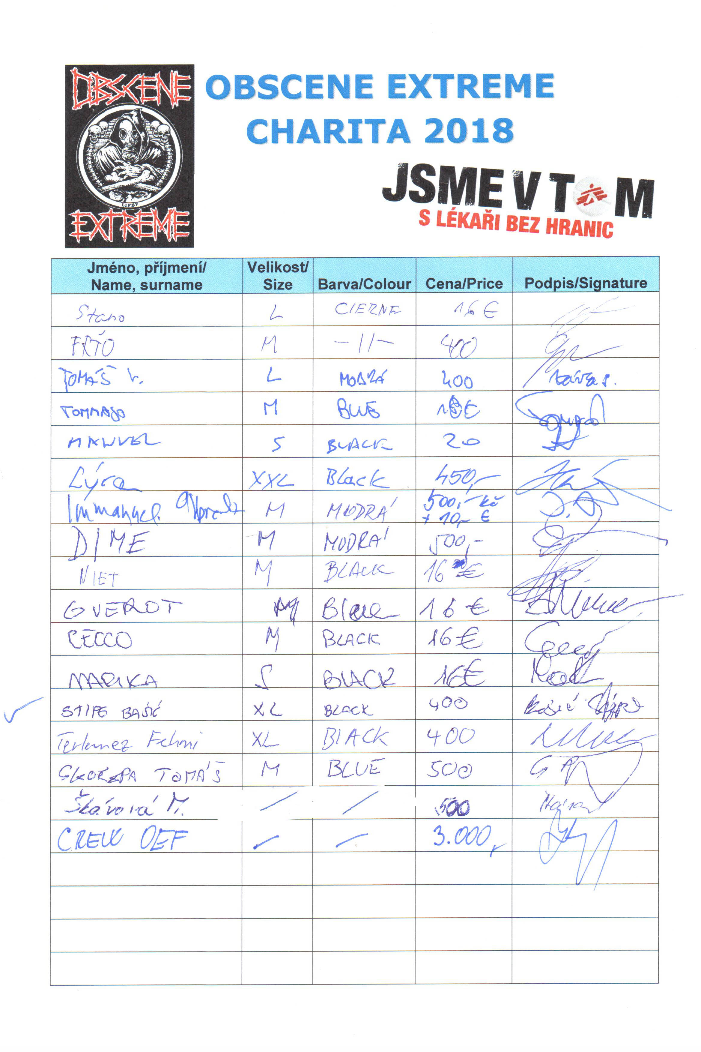 Thanks to you we were able to collect the amount of 138.776,- CZK l 5.551 euro at Obscene Extreme 2018. The limited number of 200 pcs was sold already on Friday. 745.502,- CZK l 29.820 euro is the sum we were able to raise for Doctors together with you between 2012 - 2018.