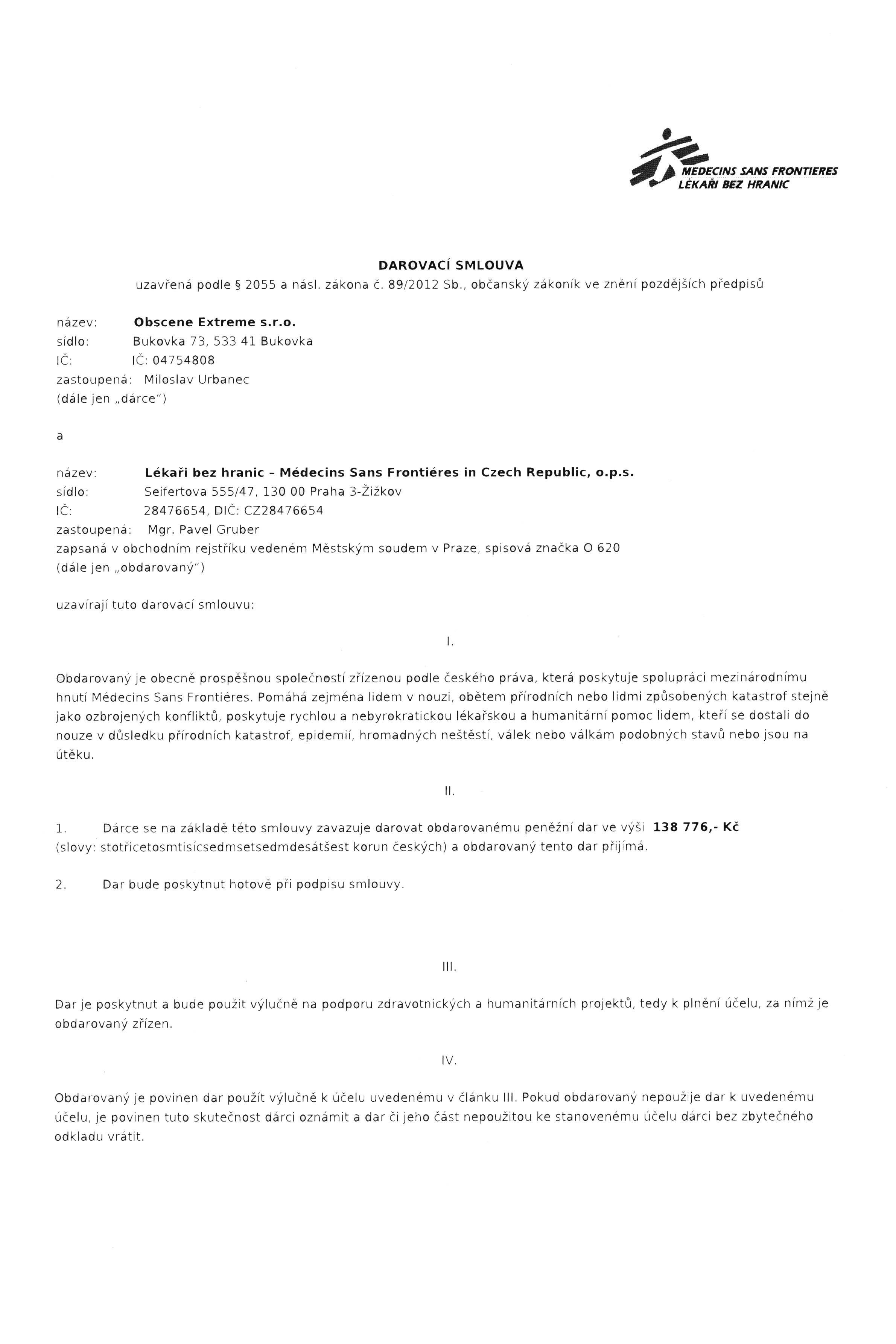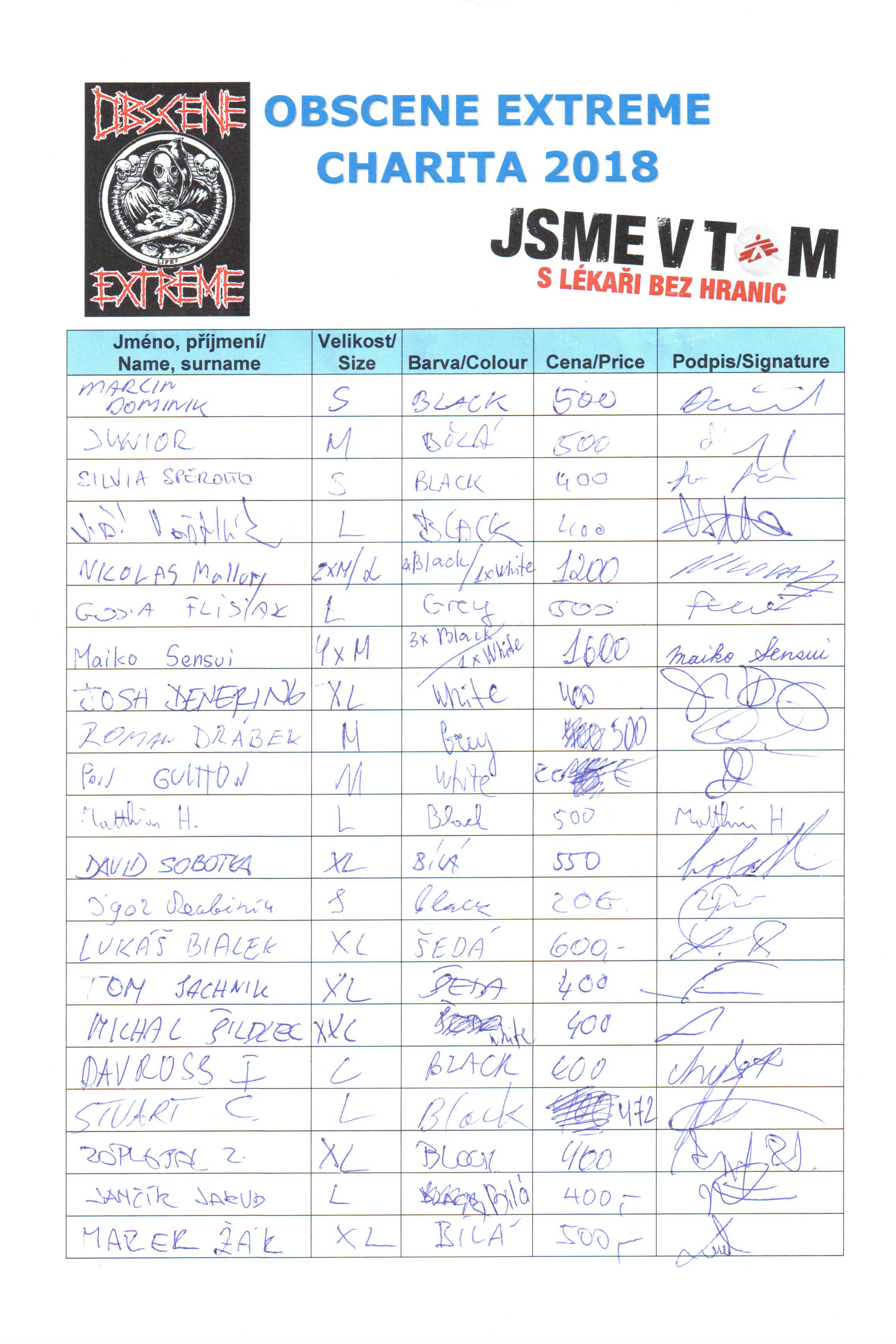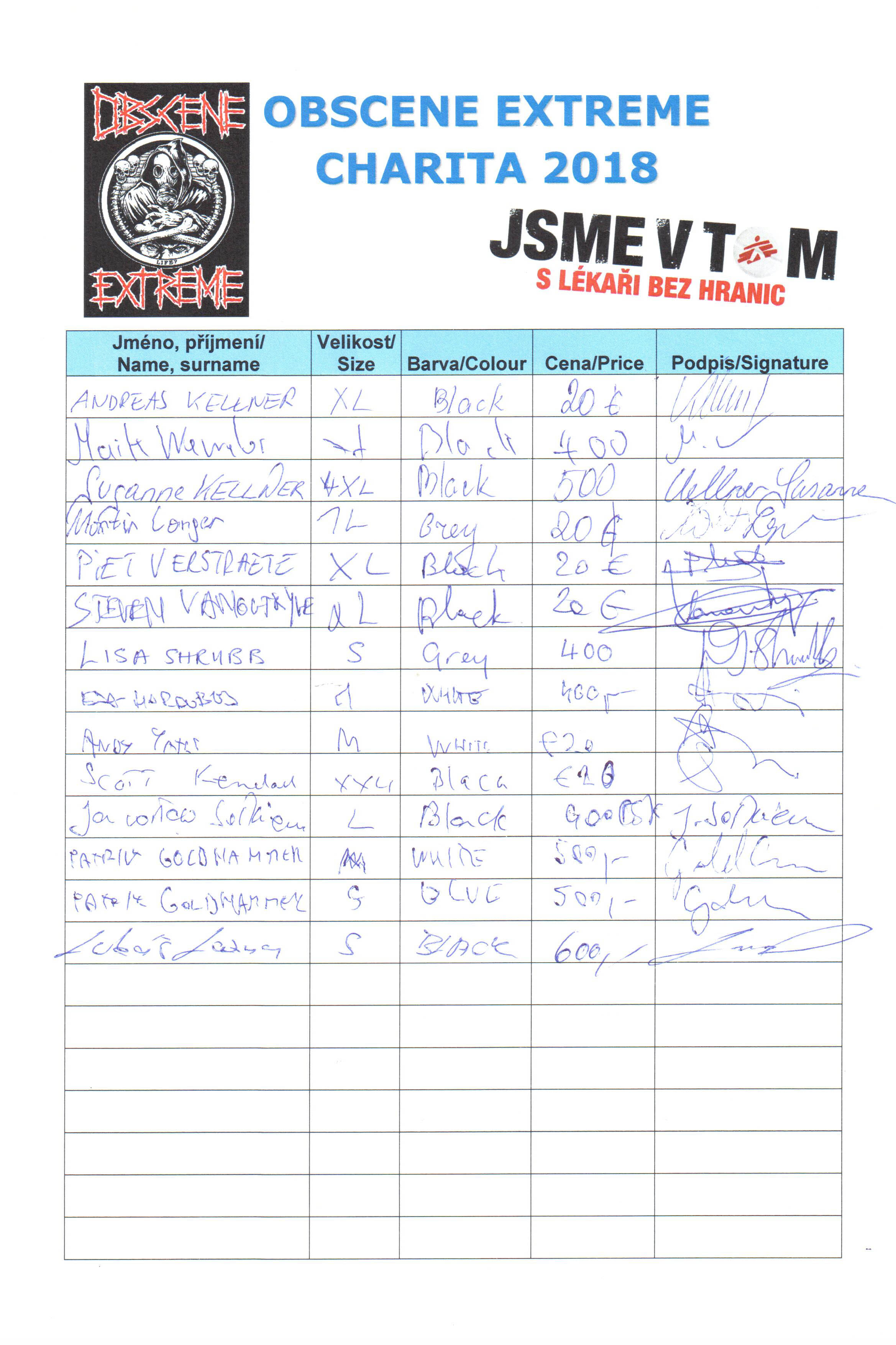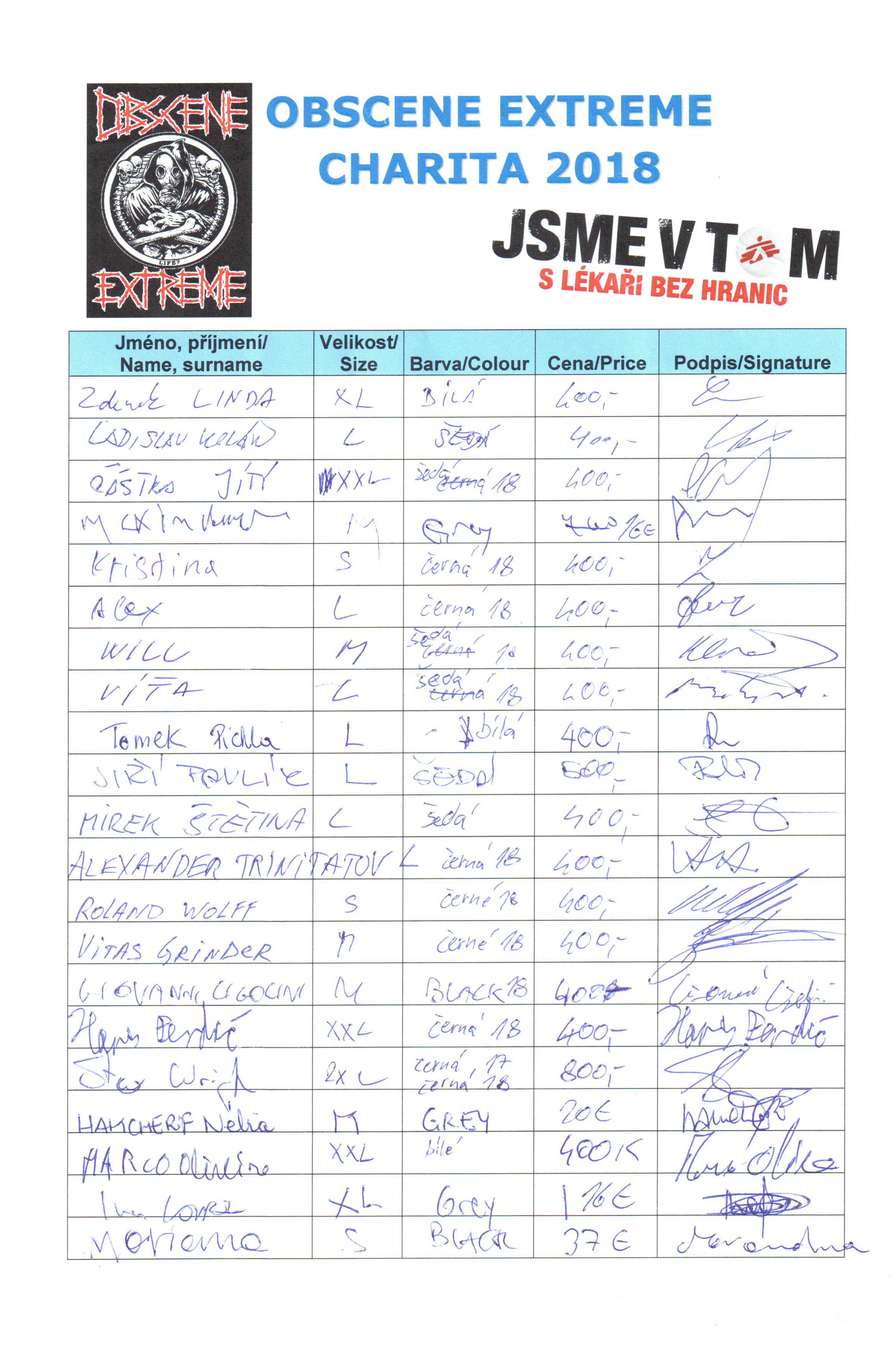Thanks to you we were able to collect the amount of 138.776,- CZK l 5.551 euro at Obscene Extreme 2018. The limited number of 200 pcs was sold already on Friday. 745.502,- CZK l 29.820 euro is the sum we were able to raise for Doctors together with you between 2012 - 2018.
