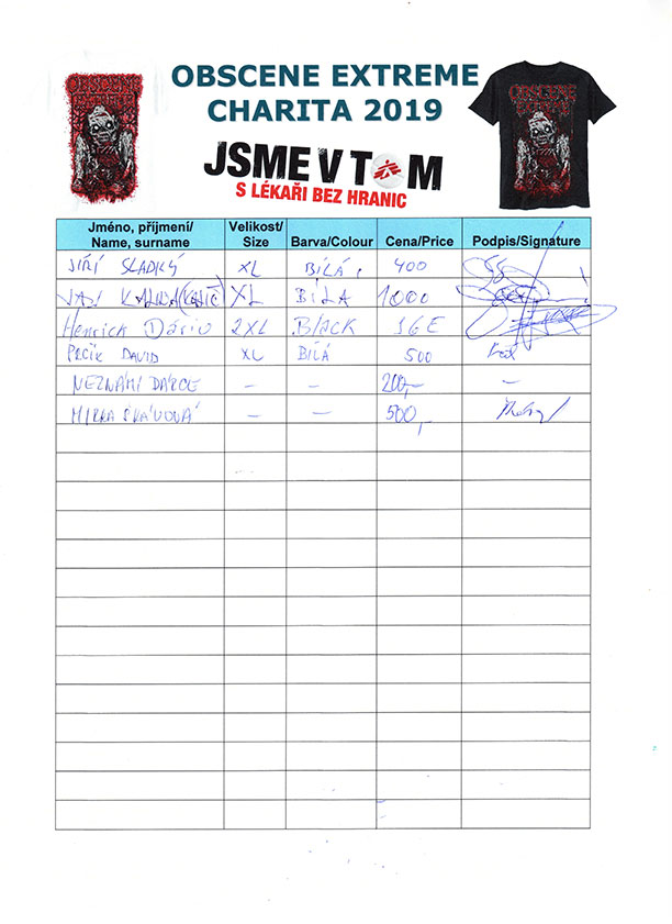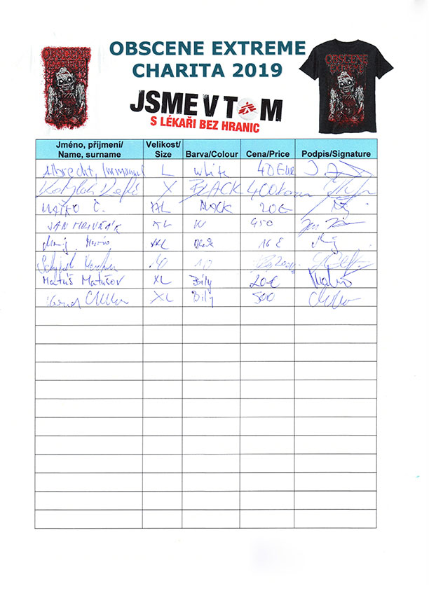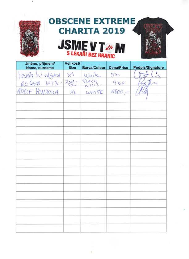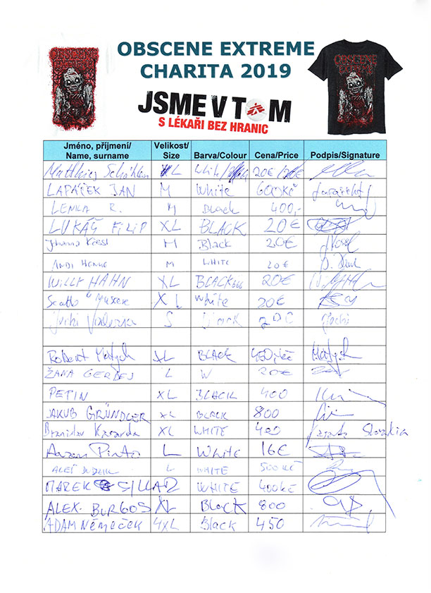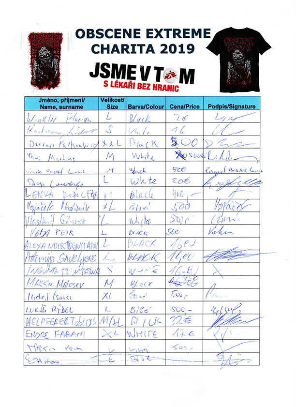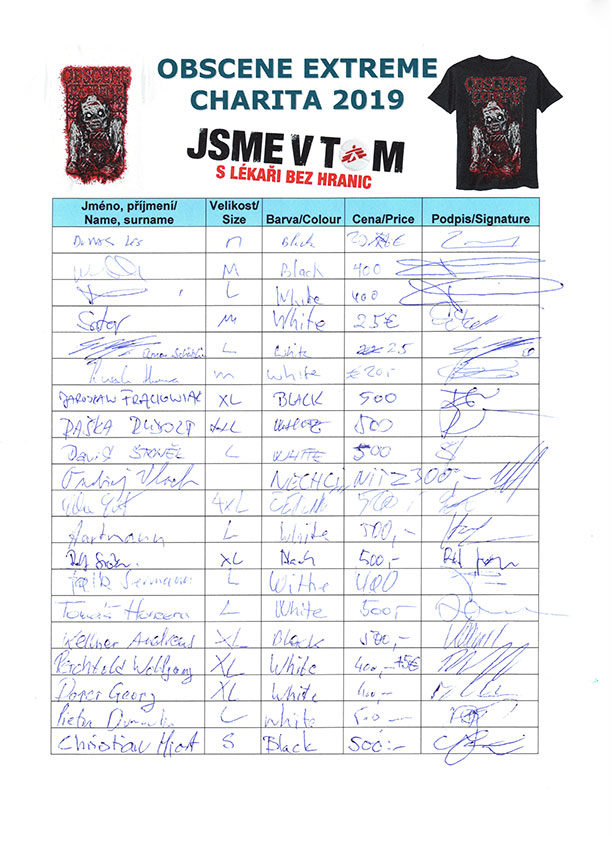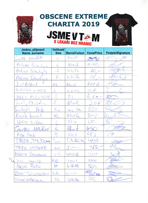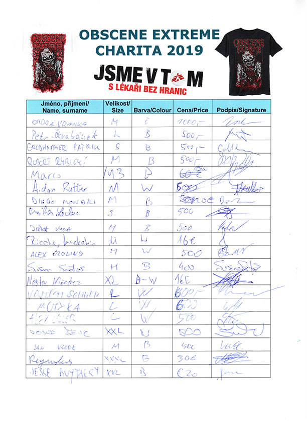 List of Charity donors via the Obscene e-shop during 2018/2019: