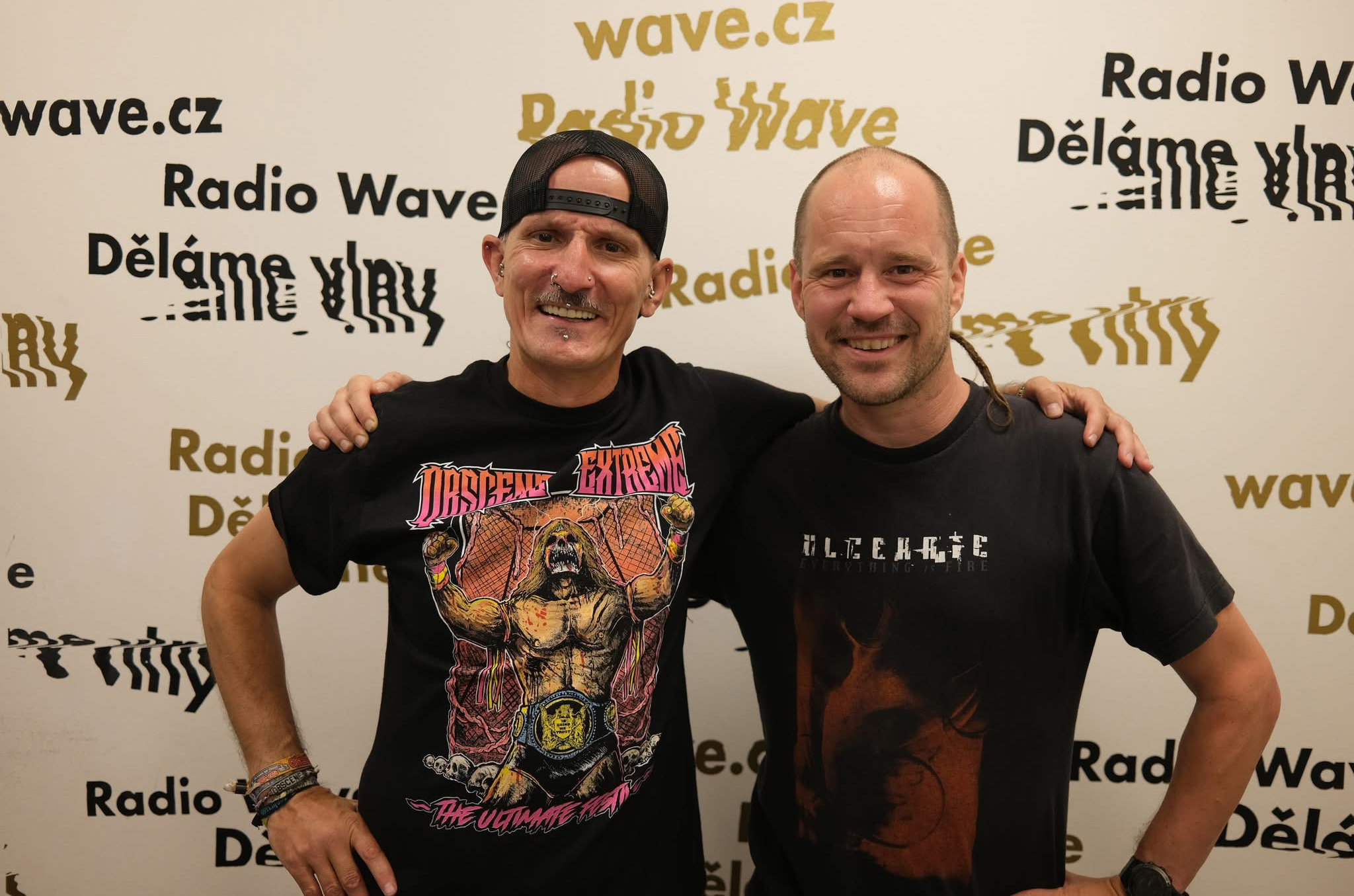 I po 25 letech pořádání festivalu dokáží stále vidět 80 kapel z 84, které tam hrají. A neztratit u toho úsměv na rtech. Jak je to možné? Poslechněte si nový rozhovor: https://wave.rozhlas.cz/delame-festival-z-pozice-hudebnich-fanousku-rikaji-organizatori-obscene-extreme-9502648.